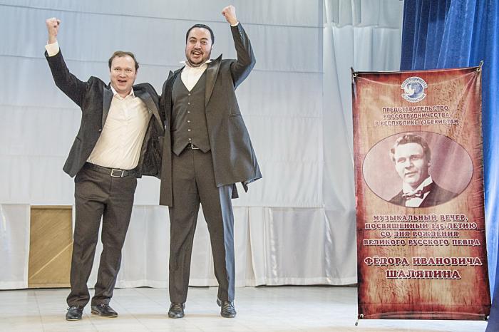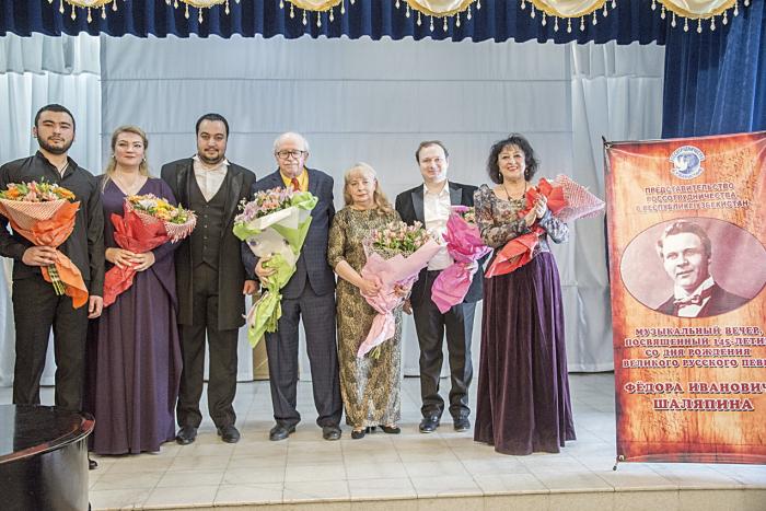 13 февраля мировая музыкальная общественность отмечает юбилей великого русского оперного певца Федора Ивановича Шаляпина от Москвы до Парижа: ташкентцы оказались в числе первых, отдавших дань памяти великому артисту. В зрительном зале свободных мест не было: люди стояли даже в проходе. На концерте присутствовали: руководитель РЦНК в Ташкенте В.Н. Шулика; народная артистка Узбекистана, обладатель медали Пушкина и Ордена Дружбы Галина Мельникова; руководство и представители русского, татарского, крымско-татарского, башкирского, греческого культурных центров, общественных организаций; заслуженные деятели науки, культуры и искусства Узбекистана; преподаватели и учащиеся столичных вузов; учащиеся лицеев, колледжей и школ Ташкента и Ташкентской области; слушатели курсов при РЦНК в Ташкенте; российские соотечественники, журналисты и просто любители классической и народной музыки.