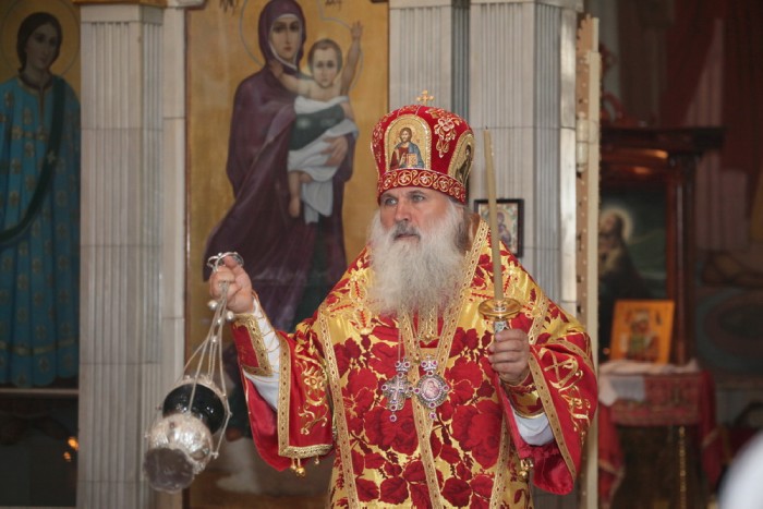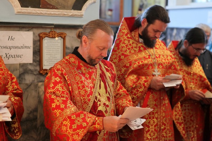 Его Высокопреосвященству сослужили клирики собора: митрофорный протоиерей Михаил Котляров, протоиерей Сергий Андреев, иерей Сергий Алахтаев, иерей Игорь Лосев, протодиакон Александр Несин, диакон Андрей Тонких, диакон Андрей Лин.