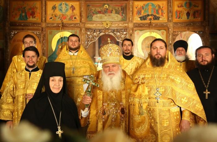 За Богослужением также молились настоятельница монастыря игуменья Екатерина (Мальгина) с сестрами обители, учащиеся катехизаторского и регентско-певческого отделений прихожане.