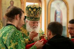 Митрополит Викентий: Как обычно, накануне всегда исповедуем, т.е. в субботу вечером и вечером во время Всенощного бдения. Это будет Великая суббота, большая служба закончится в 13:00–14:00 часа. Потом перерыв до 23:00, может, раньше. Надо посмотреть распорядок. Люди приходят к 21:00, читается в это время Апостол, и желающие могут исповедаться. Исповедовать будем до начала Литургии, может и в течение Литургии. Все зависит от количества причастников.